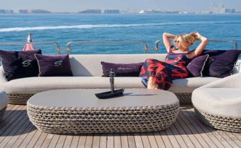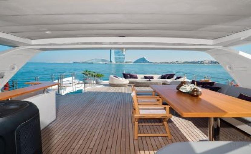 The flybridge also comes equipped with a shaded area, ensuring guests can relax in comfort during the sunny hours. Whether you’re soaking in the breathtaking views of the Burj Al Arab or cruising toward the horizon, the flybridge guarantees an unforgettable experience.